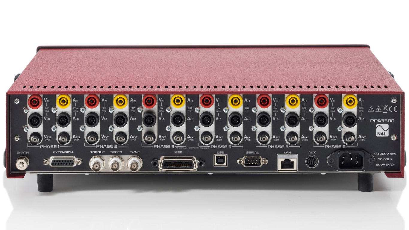 PPA3500 包括所有标准端口,包括内部 (4mm) 和外部 (BNC)、扭矩、速度、RS232、LAN、USB、GPIB。
